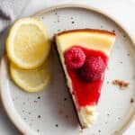 This Ultimate Cheesecake Recipe delivers a rich, creamy, and perfectly smooth cheesecake with a buttery graham cracker crust, baked in a water bath for a crack-free finish. Topped with a fresh raspberry sauce, this classic dessert is ideal for any celebration or special occasion.