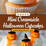 These Creamsicle Mini Halloween Cupcakes combine the nostalgic flavors of orange and vanilla with a festive twist perfect for Halloween. Soft, moist mini cupcakes are flavored with orange extract and juice, then topped with a creamy, swirled orange-vanilla frosting sprinkled with orange sugar crystals and adorned with fun pumpkin icing decorations. Ideal for parties or seasonal treats, these cupcakes are both delightful to make and delicious to eat.