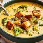 Serve your Creamy Broccoli Cheddar Soup hot, topped with crunchy croutons if you like a little textural contrast. I sometimes sprinkle extra cheddar on top or fresh chives. Either way, this soup is best enjoyed fresh but leftovers are fantastic too.