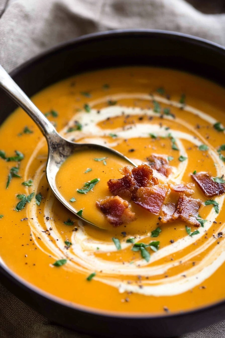 Absolutely! If you leave out the bacon, I recommend adding spices like ground coriander or sautéed ginger to boost the flavor so the soup doesn’t feel flat. The cream and herbs will still give you a delicious, rich soup that’s perfect for vegetarians.