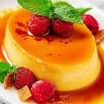 - Unmold and Serve: Run a knife around the edge of the flan to loosen it. Invert onto a rimmed serving plate to catch any caramel drips. Slice and serve chilled.