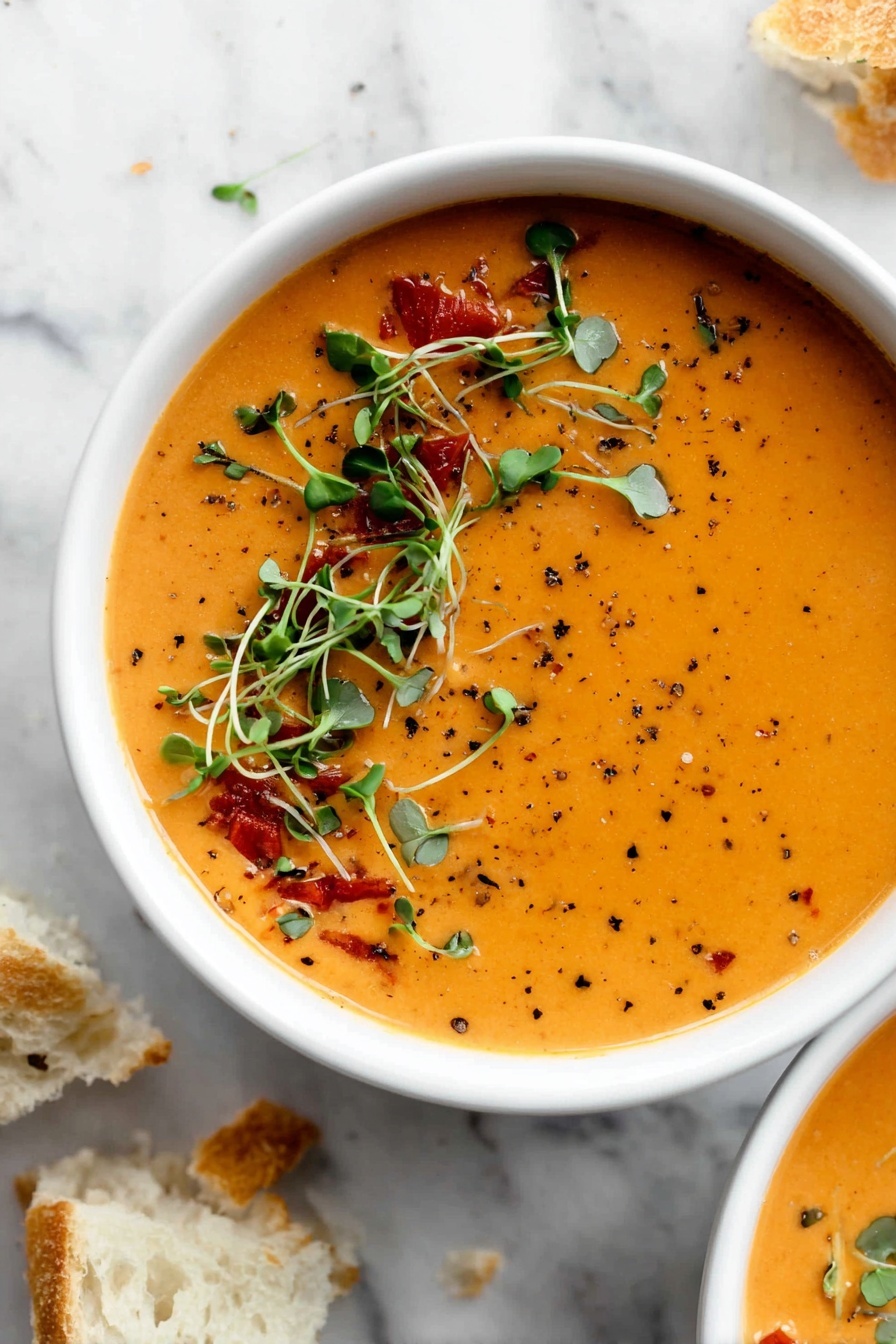 Spoon your soup into bowls and don’t be shy with the garnishes—a sprinkle of freshly cracked black pepper, extra crushed red pepper flakes for heat, and a few bright basil leaves make it irresistible. I always serve it alongside crusty bread for dipping, which my family goes crazy for. It’s comfort food at its best.