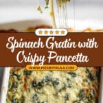 PrintCreamy Spinach Gratin with Pancetta, Gruyère, and Parmesan Recipe