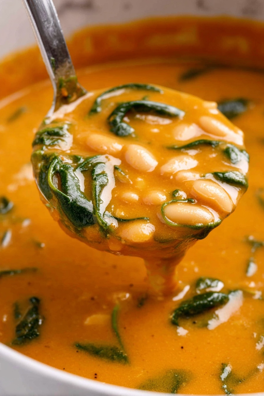 This soup freezes beautifully. I portion it into freezer-safe containers and freeze for up to 3 months. When ready to enjoy, thaw it overnight in the fridge and reheat gently on the stovetop. I usually add the spinach fresh when reheating to keep that vibrant green color and texture intact.
