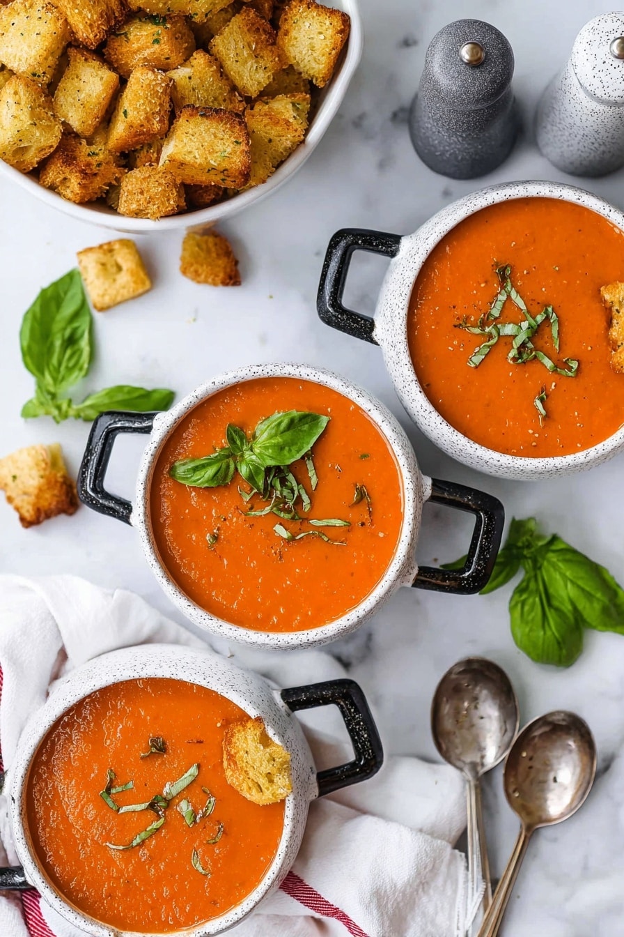 I love topping this soup with a sprinkle of freshly grated parmesan and a few torn basil leaves—the cheese melts slightly and adds an umami boost. For crunch, homemade garlic croutons or toasted pine nuts bring a nice contrast. Sometimes, I swirl a little extra cream or a drizzle of good olive oil for a fancy touch that always impresses guests.