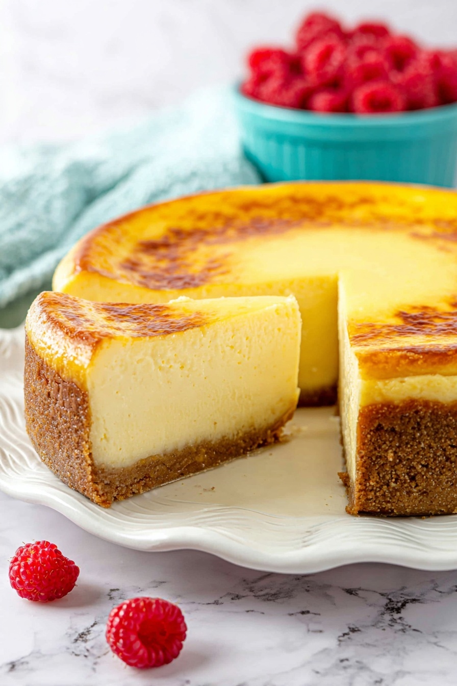 This cheesecake shines as a dessert star on its own, but I love pairing it with a tart berry compote, which cuts through the richness beautifully. A small scoop of vanilla bean ice cream or a dollop of lightly whipped cream also complements it nicely, especially on warmer days.