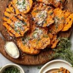 I love finishing these smashed sweet potatoes with fresh thyme because it brightens up the rich flavors. Sometimes I throw on a sprinkle of extra parmesan or even chopped green onions when I want an extra pop of freshness and color.