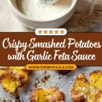 This Crispy Smashed Potatoes recipe offers perfectly tender potatoes with a golden, crispy crust, flavored with garlic and olive oil. Served with a creamy garlic feta sauce and fresh herbs, it makes a delicious side dish or appetizer that’s easy to prepare and loved by all.