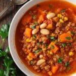 This hearty Crock Pot Beef and Bean Soup is a comforting and flavorful meal perfect for chilly days. Ground beef, beans, vegetables, and a rich tomato base slow cook together to create a nourishing and easy-to-make soup with minimal hands-on time.