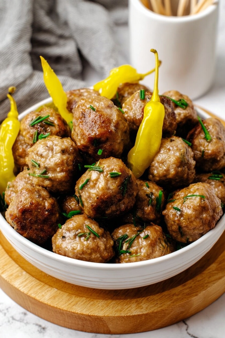 6. Garnish and Serve: Once cooking is complete, garnish the meatballs with chopped fresh chives and additional pepperoncini peppers if desired. Serve warm.