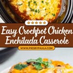 This comforting Crockpot Chicken Enchilada Casserole is a delicious and easy-to-make meal perfect for busy days. Tender chicken is slow-cooked with enchilada sauce, black beans, green chiles, and spices, then layered with torn corn tortillas and melted Mexican cheese for a flavorful casserole with minimal effort.