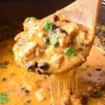 This comforting Crockpot Chicken Enchilada Casserole is a delicious and easy-to-make meal perfect for busy days. Tender chicken is slow-cooked with enchilada sauce, black beans, green chiles, and spices, then layered with torn corn tortillas and melted Mexican cheese for a flavorful casserole with minimal effort.