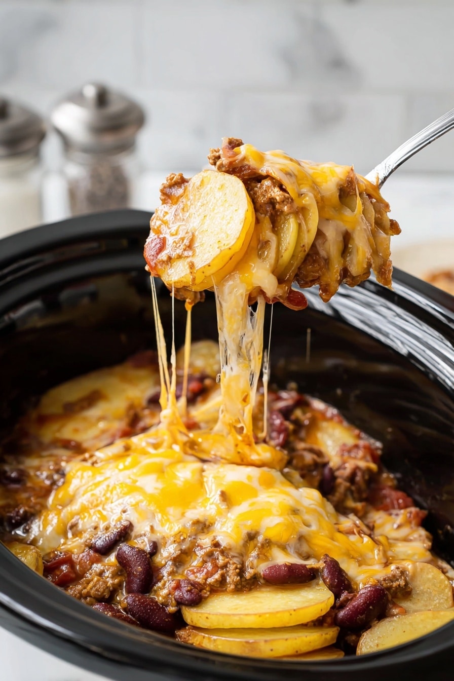 Here’s a little trick I discovered: before layering your sliced Yukon gold potatoes into the crockpot, scoop out about 1 ½ cups of the meat mixture to reserve for sprinkling later. Now, wedge or layer the thinly sliced potatoes right on top of your beef and veggie mixture. Then sprinkle that reserved meat mixture evenly over the potatoes. This layering technique helps the potatoes absorb those delicious juices and keeps every bite flavorful.