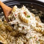 I’ve had great success with short pasta shapes like penne, rotini, or bowtie because they hold onto the sauce nicely, but you can really use any pasta you prefer. Just make sure to cook it al dente before mixing so it doesn’t overcook in the crockpot.