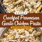A creamy and flavorful Crockpot Parmesan Garlic Chicken Pasta that combines tender slow-cooked chicken with rich Parmesan and garlic sauce, perfectly paired with pasta for an effortless and comforting meal.