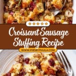 This Croissant Stuffing Recipe is a delightful twist on traditional stuffing, featuring flaky croissant pieces baked with savory sausage, fresh herbs, apples, pecans, and dried cranberries. Perfectly toasted croissants are combined with a flavorful mixture of ground pork sausage, aromatic vegetables, and a touch of white wine, then baked until golden and bubbling. This comforting dish is ideal for holiday gatherings or as a special side throughout the year.