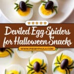These Halloween-themed Deviled Egg Spiders are a spooky and fun appetizer perfect for parties or festive gatherings. Creamy deviled eggs are transformed with olive ‘spiders’ that sit atop each egg half, making a creepy yet delicious treat that’s easy to prepare and sure to impress guests.