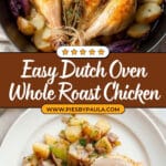 This Dutch Oven Whole Roast Chicken recipe offers a perfectly roasted, juicy chicken with crispy skin and flavorful vegetables cooked alongside. The chicken is seasoned with Italian herbs and roasted with apples, onions, garlic, carrots, and potatoes, making it a comforting and complete one-pot meal ideal for family dinners.