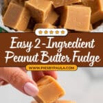 A simple and delicious 2-ingredient peanut butter fudge made with creamy peanut butter and vanilla frosting. This easy recipe requires minimal preparation and sets up perfectly into rich, creamy squares, perfect for a quick sweet treat or holiday dessert.