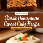 When I’ve made this carrot cake for birthdays, I’ve piped little frosting “carrots” on top and added edible flowers for a rustic garden vibe. Another time, I made mini carrot cakes in muffin tins as party favors — everyone loved how approachable and cute those were!
