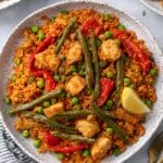 This Easy Chicken Paella recipe is a flavorful and colorful Spanish-inspired one-pan meal that combines tender browned chicken, aromatic spices, vibrant vegetables, and hearty short grain brown rice simmered in savory chicken broth with a hint of lemon and saffron. Perfect for a comforting weeknight dinner that comes together with simple ingredients and minimal fuss.