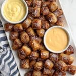 - Bake: Bake in the preheated oven for 10 to 12 minutes or until pretzel bites are deep golden brown.