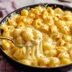 A creamy, cheesy 25-minute stove-top mac and cheese recipe made with sharp cheddar and gruyere cheeses for a rich, comforting meal. Perfect for a quick weeknight dinner or a satisfying side dish, this classic mac and cheese features tender pasta shells enveloped in a luscious cheese sauce seasoned with garlic, onion powder, and freshly ground black pepper. Optional broiling tops it with bubbly, golden cheese for extra indulgence.