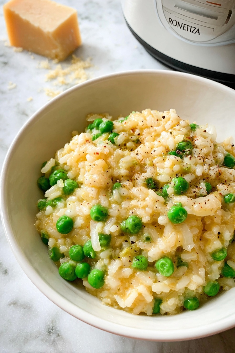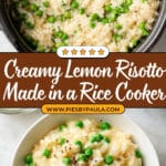You can prep all the ingredients beforehand, but I recommend cooking and serving the risotto fresh for the best creamy texture. If you need to save time, make the rice cooker portion, then add lemon, peas, and cheese just before serving. Leftovers keep well, too, if you can’t finish it right away.