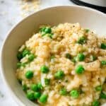 This easy and creamy rice cooker risotto recipe takes the traditional stovetop cooking method out of the equation by using a rice cooker. With simple ingredients like Arborio rice, vegetable broth, shallots, garlic, and Parmesan cheese, this dish is effortless to prepare yet rich in flavor. The addition of lemon zest and frozen peas adds brightness and a pop of color, making this risotto a perfect side dish or light main course.