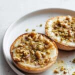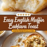 This English Muffin Baklava is a quick and delicious twist on the classic Middle Eastern dessert, combining toasted English muffins with a rich pistachio-walnut butter, gooey mascarpone cheese, and drizzled honey for a delightful treat that’s perfect for breakfast or dessert.