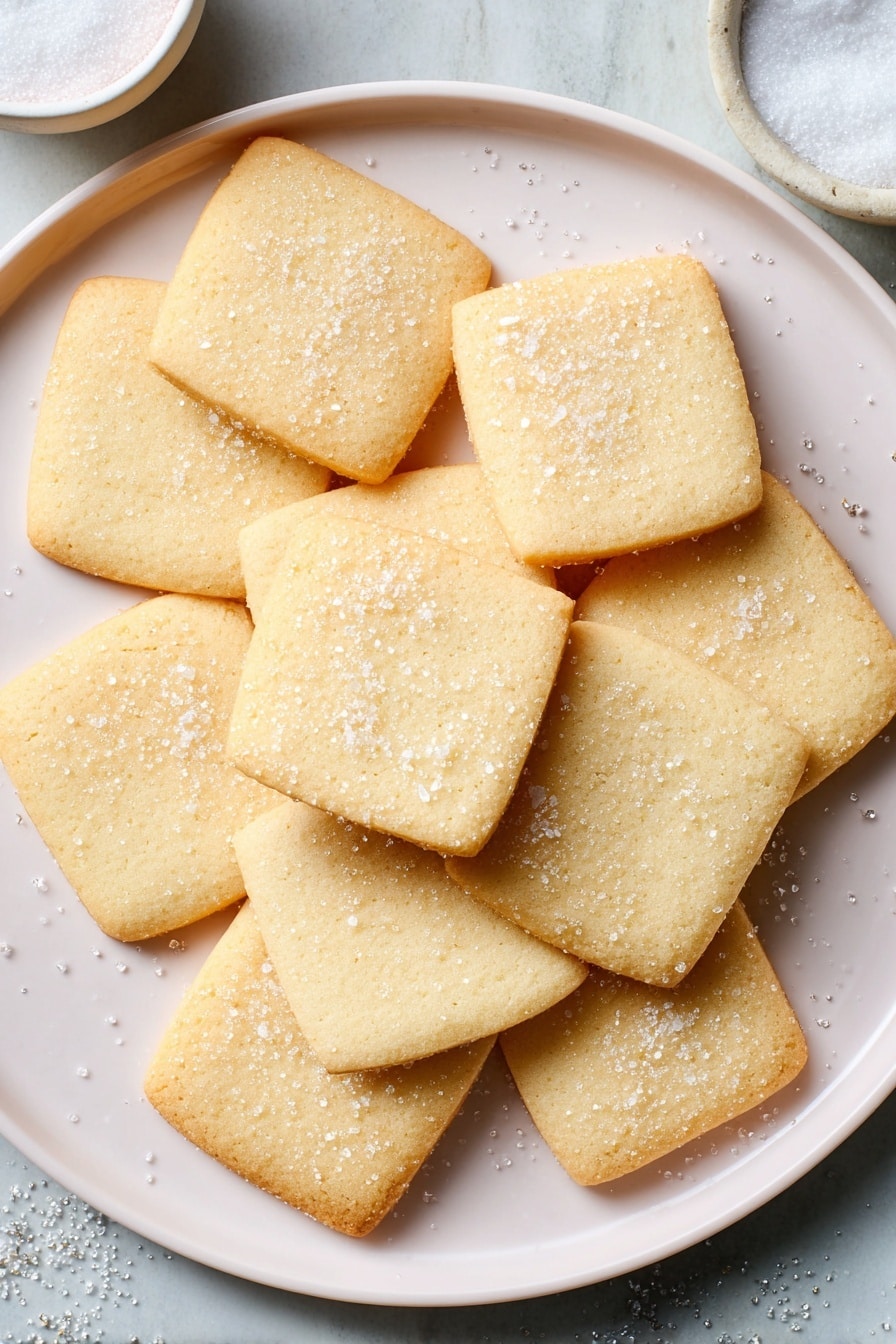 Classic shortbread cookies featuring a tender, buttery texture with a hint of vanilla and a crunchy finish from coarse sugar. Perfect for enjoying with tea or gifting during holidays.