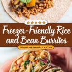 These freezer-friendly Rice & Bean Burritos are a delicious, hearty, and convenient meal option packed with flavorful seasoned rice, tender beans, and sautéed fajita vegetables wrapped in soft tortillas. Perfect for meal prep, they can be enjoyed warm right away or stored in the freezer for later use with easy reheating instructions.