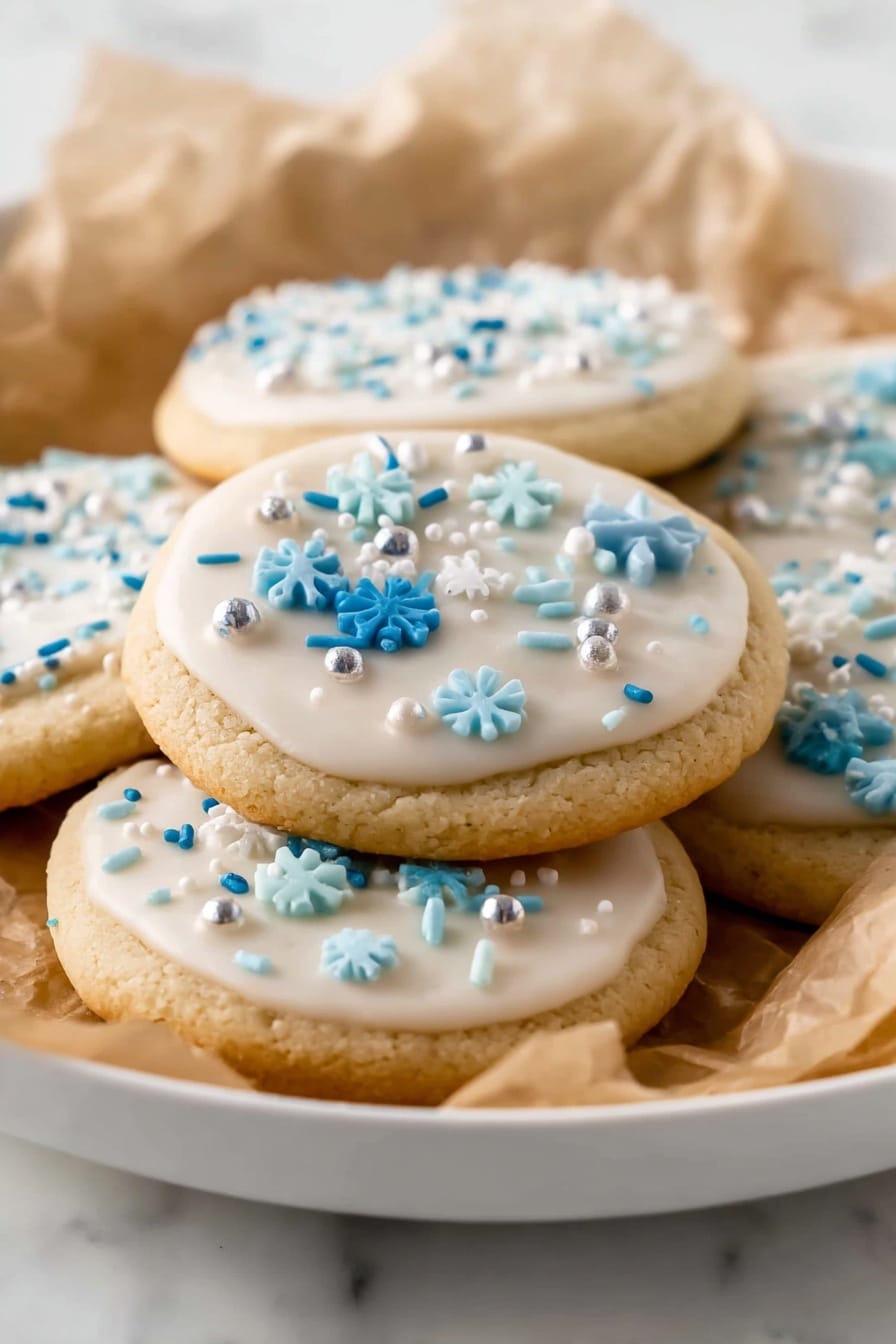 I’ve had great fun arranging these sugar cookies on decorative trays layered with parchment and fresh herbs like sprigs of rosemary or mint for a pop of color. For holiday parties, I sometimes drizzle them with a quick chocolate ganache or dip half in melted chocolate for a fancy twist. Presentation really amps up the wow factor!