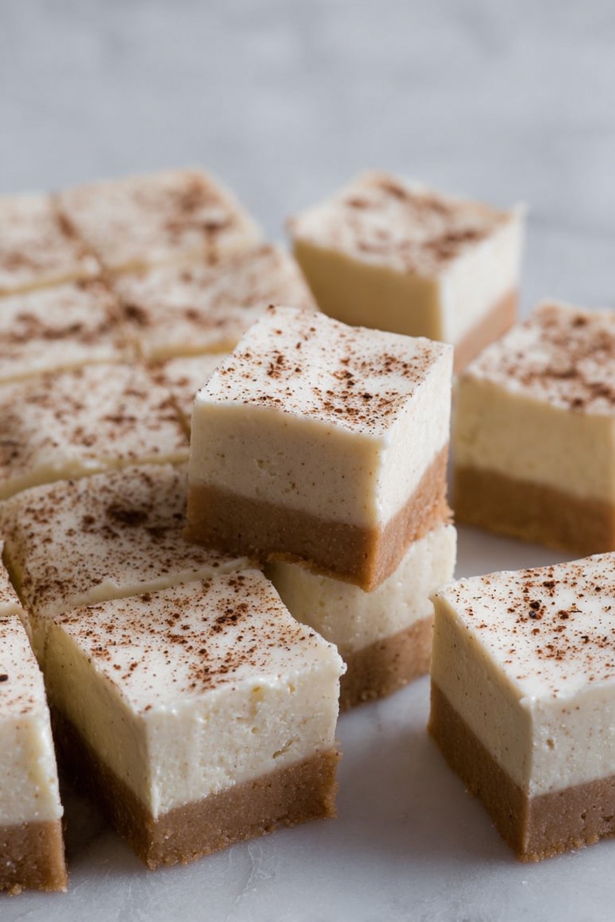 Once the bars are completely cooled, spread the frosting over the top evenly. Sprinkle a pinch of nutmeg for that final festive flourish. Pop the bars in the fridge for a few minutes to let the frosting set before slicing into squares and serving.