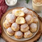Delight in these festive Eggnog Cream Puffs featuring light and airy choux pastry filled with a rich and creamy eggnog-infused custard, topped with a smooth blend of whipped cream for an irresistible holiday treat.