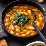 This Simple Bean Soup from the legendary El Bulli restaurant is a rich and comforting vegetarian soup featuring tender cannellini beans simmered with aromatic herbs, garlic, and tomato passata. The soup is thickened with a portion blended smooth and brightened with a vibrant hazelnut and parsley picada, making it a wholesome and flavorful meal perfect for any season.