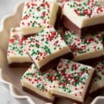 This festive Christmas fudge recipe features creamy layers of semi-sweet and white chocolate swirled with sweetened condensed milk and a touch of vanilla. Topped with colorful Christmas sprinkles, it’s a delightful no-bake treat that sets perfectly in the fridge, making it an ideal holiday dessert or gift.