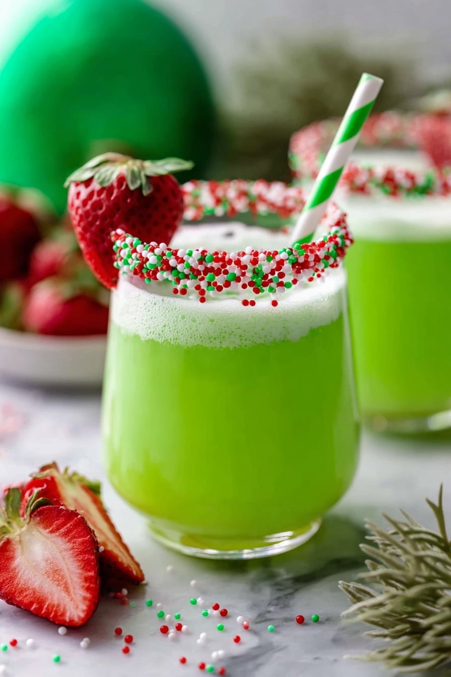 - Serve: Pour the Grinch Punch into individual glasses, optionally garnishing them with fun Christmas-themed sprinkles for extra holiday spirit, then enjoy immediately.