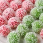 - Roll Green Balls: Repeat the rolling and coating process using the green mixture and the other coconut bowl to prevent color transfer.