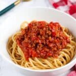 A delicious and uniquely Filipino twist on classic spaghetti featuring sweet-style spaghetti sauce, banana ketchup, and sliced hot dogs, combined with ground pork and topped with freshly grated cheese for a comforting and flavorful meal perfect for family gatherings or casual dinners.