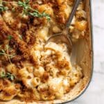 - Garnish and Serve: Remove from oven and sprinkle fresh thyme over the dish. Serve warm and enjoy the rich flavors of French Onion Mac and Cheese.