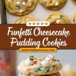 These Funfetti Cheesecake Pudding Cookies are soft, chewy, and bursting with fun rainbow sprinkles and creamy white chocolate chips. Made with cheesecake pudding mix for a rich, tangy twist, they’re perfect for celebrations or anytime you want a delightful treat with a colorful pop.