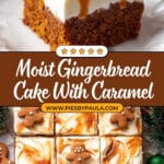 This Gingerbread Cake is a moist and flavorful spiced dessert that combines traditional gingerbread spices with a luscious gingerbread caramel sauce and creamy cream cheese frosting. Perfect for festive occasions or cozy gatherings, the cake is baked to perfection in a 9×9 inch pan and enhanced by a drizzle of warm caramel infused with warming spices, then finished with a rich cream cheese frosting for a delightful balance of flavors and textures.