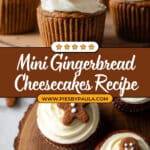 Delightfully festive Mini Gingerbread Cheesecakes featuring a spiced graham cracker crust, smooth gingerbread-flavored cheesecake filling, and topped with fluffy homemade whipped cream. Perfect for holiday gatherings or anytime you crave a cozy, spiced dessert in a convenient mini portion.
