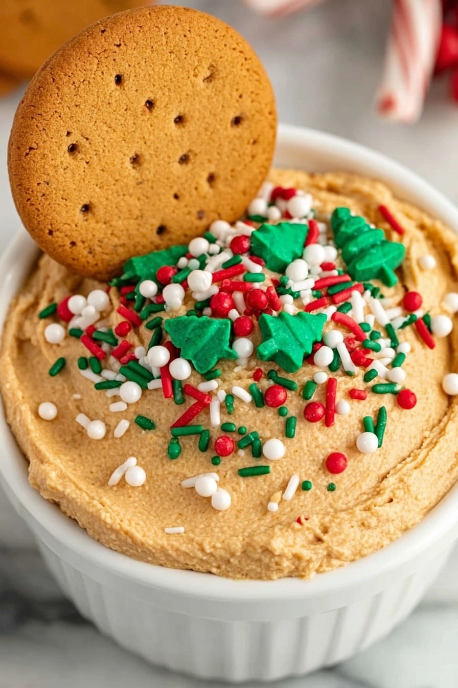 Last holiday season, I served this dip in a hollowed-out mini pumpkin surrounded by an assortment of dippers arranged in a festive wreath shape—it was a big hit and looked stunning on the dessert table. You can also portion the dip into mini cups topped with individual sprinkles for easy grab-and-go treats that kids absolutely love.
