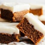 Delight in these soft and moist Gingerbread Cookie Bars topped with a creamy, smooth cream cheese frosting. Infused with warm spices like ginger, cinnamon, cloves, and nutmeg, these bars bring the classic holiday flavors into a simple, easy-to-make traybake that’s perfect for sharing or gifting.