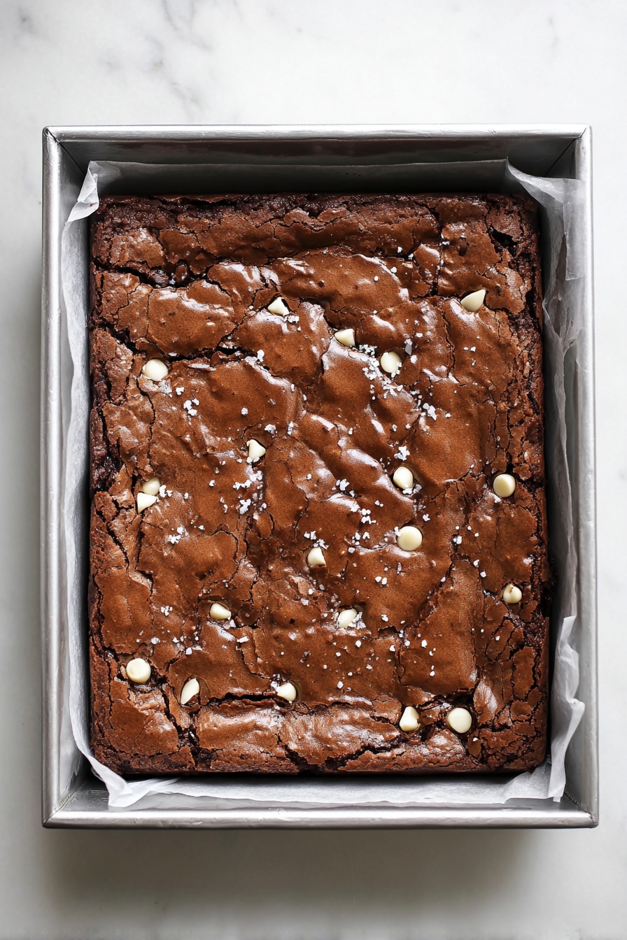 7. Fill Pan and Bake: Spread the batter evenly into the prepared baking pan. Bake in the preheated oven for approximately 27 minutes, or until the edges are set and solidified and the center still has a very slight jiggle when gently shaken. If desired, sprinkle the top with flaky sea salt immediately after removing from the oven.