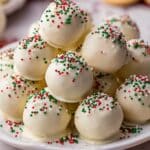 Delight in these festive Christmas Golden Oreo Truffles, combining the creamy richness of softened cream cheese with the crunchy sweetness of Golden Oreos, all coated in smooth white chocolate and topped with colorful sprinkles. Perfect for holiday parties or a sweet treat, these no-bake truffles are easy to make and irresistibly delicious.