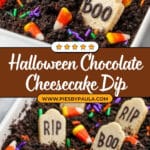 - Serve: Serve the dip with extra cookies or crackers for dipping. Enjoy your Halloween-themed chocolate cheesecake dip with friends and family!