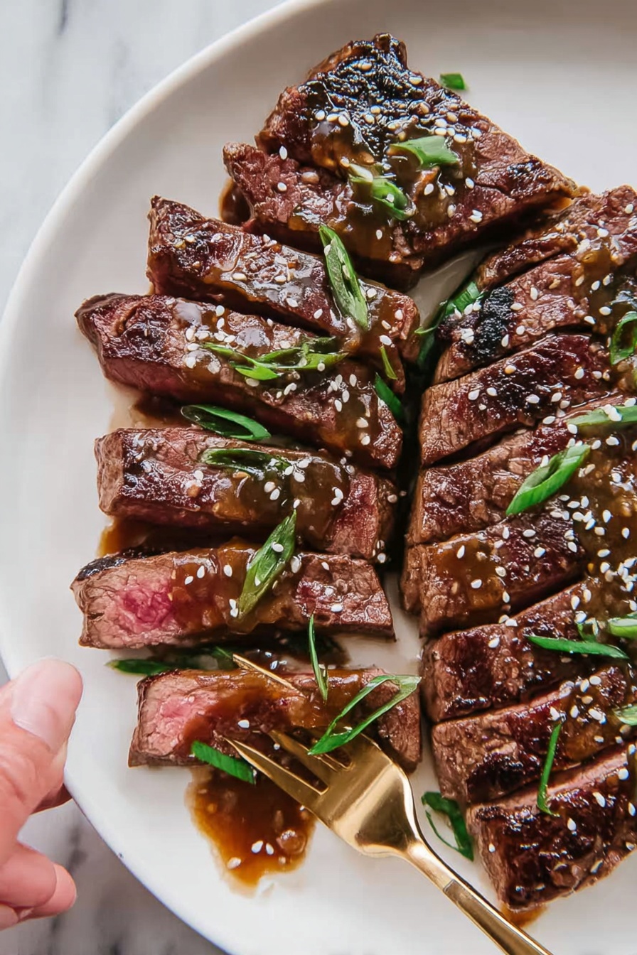 I love sprinkling sliced green onions on top of the finished steaks—it adds a fresh bite and a pop of color that makes the dish look restaurant-worthy. Sometimes, a handful of toasted sesame seeds goes on as well for that little crunch and extra nuttiness.